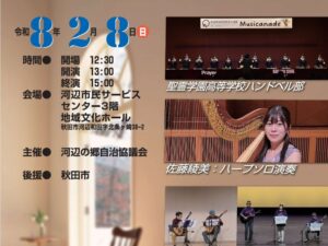 令和8年2月8日(日)、河辺市民サービスセンター3階・地域文化ホールにて、第12回河辺音楽祭を開催します。開場は12:30、開演13:00、終演15:00です。入場は無料です。 地域に親しまれてきた音楽祭として、心に響く […]